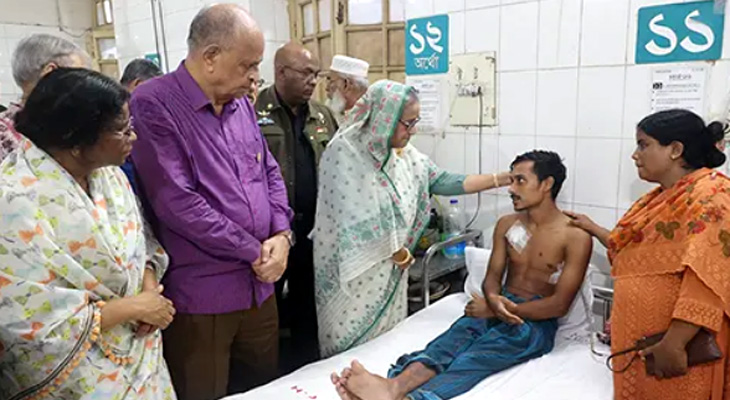 শুক্রবার বিকেলে ঢাকা মেডিকেল কলেজ হাসপাতালে সহিংসতায় আহতদের দেখতে গিয়ে তিনি এ কথা বলেন। এসময় প্রধানমন্ত্রী ঢাকা মেডিকেল কলেজ হাসপাতালের কয়েকটি ওয়ার্ড ঘুরে আহতদের খোঁজখবর নেন। তিনি চিকিৎসক ও নার্সদের সঙ্গে কথা বলেন। আহতদের সব ধরনের চিকিৎসা দেওয়ার নির্দেশ দেন।