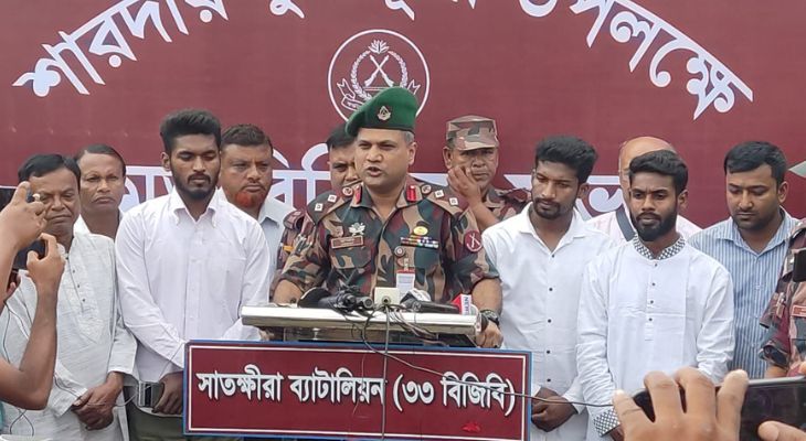 তিনি আরো বলেন, সাম্প্রতিক সময়ে চলমান পরিস্থিতির আলোকে সাতক্ষীরার সীমান্তবর্তী জনপদে শৃঙ্খলা ফিরিয়ে এনে জনমনে আস্থা বৃদ্ধির লক্ষ্যে কাজ করছে। এসময় বিজিবির পক্ষ থেকে সীমান্ত ও সীমান্তের আশেপাশের জনপদে নিরাপত্তা জোরদারের পাশাপাশি নিচ্ছিদ্র নিরাপত্তা নিশ্চিত করা হয়েছে। একই সাথে সীমান্তে পথে অবৈধ অনুপ্রবেশবোধে বিজিবি সার্বক্ষনিক টহল পরিচালনা করছে।
