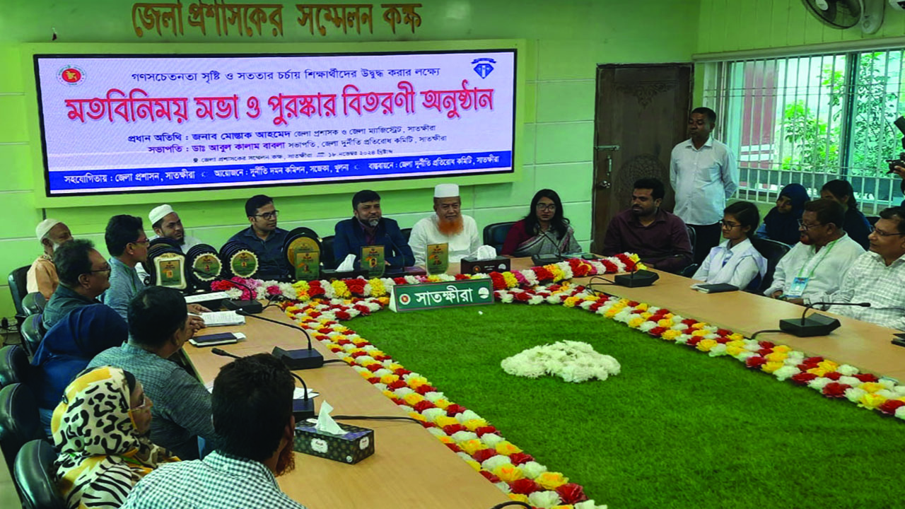 গণসচেতনতা সৃষ্টি ও সততার চর্চায় শিক্ষার্থীদের উদ্বুদ্ধ করার লক্ষ্যে সোমবার (১৮ নভেম্বর) বেলা ১২টায় জেলা প্রশাসকের সম্মেলন কক্ষে এক মতবিনিময় সভার আয়োজন করা হয়। সাতক্ষীরা জেলা প্রশাসনের সহযোগিতায় ও জেলা দুর্নীতি প্রতিরোধ কমিটির বাস্তবায়নে দুর্নীতি দমন কমিশন সজেকা খুলনা এই সভার আয়োজন করে। জেলা দুর্নীতি প্রতিরোধ কমিটির সভাপতি ডা. আবুল কালাম বাবলা’র সভাপতিত্বে মতবিনিময় সভায় প্রধান অতিথি হিসেবে বক্তব্য রাখেন জেলা প্রশাসক মোস্তাক আহমেদ।