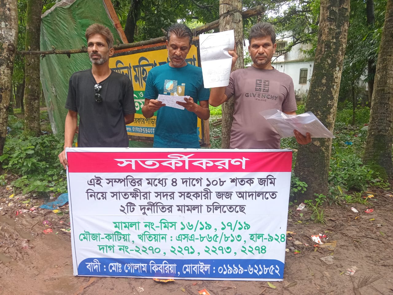 লিখিত বক্তব্যে তিনি অভিযোগ করে বলেন, তাদের পরিবার দীর্ঘদিন ধরে সাতক্ষীরা সদর উপজেলার কাটিয়া মৌজার ১০৮ শতক জমির মালিক। জমিটি ২০০৪ সালে তাদের আত্মীয়দের কাছ থেকে রেজিস্ট্রি করে নেন। এরপর থেকে তারা শান্তিপূর্ণভাবে ভোগদখল করে আসছিলেন। কিন্তু ২০০৭ সাল থেকে প্রভাবশালী মহল তাদের জমি দখলের পাঁয়তারা শুরু করে।