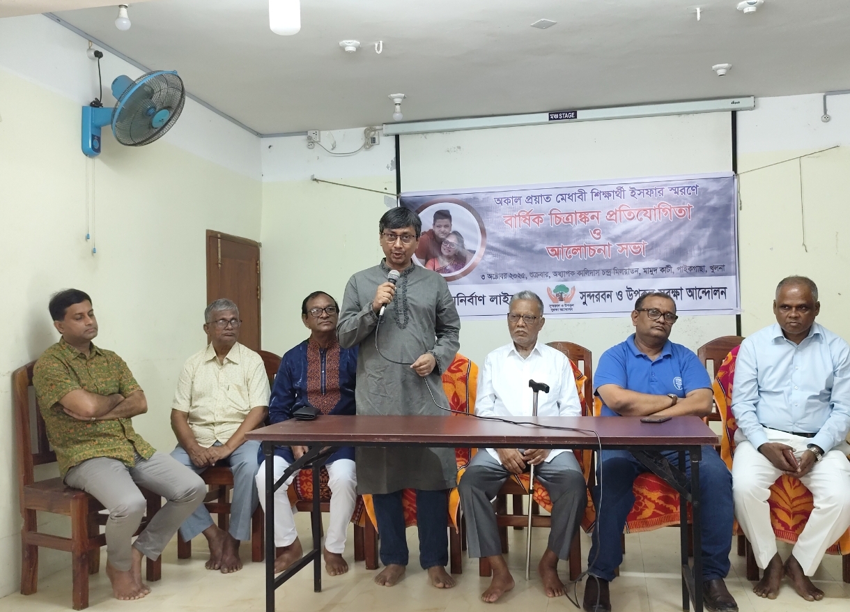 রিয়াদ হোসেন: অকাল প্রয়াত মেধাবী শিক্ষার্থী ইসফার স্মরণে চিত্রাঙ্কন প্রতিযোগিতা ও আলোচনা সভা অনুষ্ঠিত হয়েছে। শুক্রবার (৩ অক্টোবর) খুলনার পাইকগাছা উপজেলার মামুদকাটিতে অনির্বাণ লাইব্রেরির অধ্যাপক কালিদাশ চন্দ্র মিলনায়তনে এ আয়োজন করে অনির্বাণ লাইব্রেরি এবং সুন্দরবন ও উপকূল সুরক্ষা আন্দোলন।