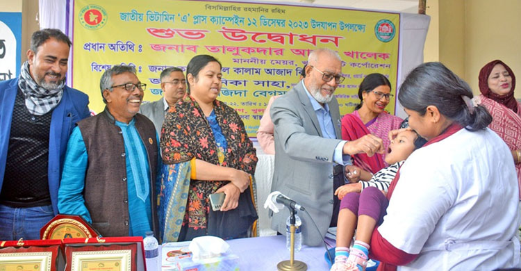 খুলনা সিটি কর্পোরেশনের মেয়র তালুকদার আব্দুল খালেক বলেছেন, ভিটামিন এ ক্যাপসুল শিশুর শরীরে রোগ-প্রতিরোধ ক্ষমতা বাড়ায়। এই ভিটামিন দৃষ্টিশক্তি স্বাভাবিক রাখতে গুরুত্বপূর্ণ ভূমিকা পালন করে। শিশুর মৃত্যুঝুঁকি কমায়। তাই শিশুদের ভিটামিন ‘এ’ ক্যাপসুল খাওয়ানো খুবই জরুরি। ভ্রাম্যমাণ জনগোষ্ঠীর জন্য প্রত্যন্ত এলাকা, রেলস্টেশন, বাস ষ্ট্যান্ড, লঞ্চঘাটসহ প্রতিটি স্থানে ভিটামিন এ ক্যাপসুল খাওয়ানো হবে। এজন্য সকল অভিভাবকদের টিকা কেন্দ্রে শিশুদের নিয়ে আসার আহবান জানান মেয়র। তিনি আজ (মঙ্গলবার) সকালে নগরীর ২ নম্বর কাস্টমঘাটস্থ আমিরাবানু বেগম নগর মাতৃসদন প্রাঙ্গণে জাতীয় ভিটামিন ‘এ’ প্লাস ক্যাম্পেইনের উদ্বোধন অনুষ্ঠানে প্রধান অতিথির বক্তৃতায় একথা বলেন। খুলনা সিটি কর্পোরেশনের প্রধান নির্বাহী কর্মকর্তা (অতিরিক্ত দায়িত্ব) সানজিদা বেগমের সভাপতিত্বে অনুষ্ঠানে খুলনা স্বাস্থ্য দপ্তরের সহকারী পরিচালক ডাঃ অপর্ণা বিশ্বাস, ডেপুটি সিভিল সার্জন ডাঃ এসএম কামাল হোসেন, কেসিসি’র প্রধান স্বাস্থ্য কর্মকর্তা স্বপন কুমার হালদার, ৫ নম্বর ওয়ার্ডের কাউন্সিলর মোহাম্মদ আলী, সংরক্ষিত নারী কাউন্সিলর কনিকা সাহা, ইউনিসেফের প্রতিনিধি শারমিন আক্তার প্রমুখ বক্তৃতা করেন। এসময় কেসিসির বিভিন্ন ওয়ার্ডের কাউন্সিলর ও সংরক্ষিত নারী কাউন্সিলরগণ উপস্থিত ছিলেন।