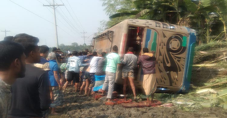 গুটুদিয়া ইউনিয়ন পরিষদের (ইউপি) সদস্য মাসুদ রানা সরদার সমকালকে জানান, আজ সকাল সাড়ে ১১টার দিকে সাতক্ষীরাগামী একটি যাত্রীবাহী বাস গুটুদিয়া ওয়াপদা এলাকায় পৌছাঁলে হঠাৎ নিয়ন্ত্রণ হারিয়ে সড়কের খাদে উল্টে যায়। এ সময় শিশুসহ আন্তত ২২ জন গুরুতর আহত হন। স্থানীয়দের চেষ্টায় আহতদের উদ্ধার করে ডুমুরিয়া স্বাস্থ্য কমপ্লেক্সে ভর্তি করা হয়। স্বাস্থ্য কমপ্লেক্সের আবাসিক মেডিকেল অফিসার ডা. হাসান শাহারিয়ার জানান, শরীরের অর্ধেক অংশ পুড়ে যাওয়া বাগেরহাটের পলাশ শেখ, পা ভেঙে যাওয়া খুলনার তেরখাদার রাবেয়া বেগম, সাতক্ষীরার বাবু মিস্ত্রি, ডুমুরিয়ার আব্দুস ছালামসহ ১২ জনকে আশঙ্কজনক অবস্থায় খুলনার মেডিকেল কলেজ হাসপাতালে পাঠানো হয়েছে। এছাড়া ১০ জনকে প্রাথমিক চিকিৎসা দিয়ে বাড়ি পাঠিয়ে দেওয়া হয়েছে।
