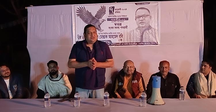 আসন্ন দ্বাদশ জাতীয় সংসদ নির্বাচন উপলক্ষে সাতক্ষীরা-২আসনের স্বতন্ত্র পদপ্রার্থী বারবার নির্বাচিত সাংসদ সাতক্ষীরা জেলা আওয়ামী লীগের সিনিয়র সহ-সভাপতি নৌ-কমান্ডো ০০০১ বীর মুক্তিযোদ্ধা মীর মোস্তাক আহমেদ রবির ঈগল প্রতীকের নির্বাচনী পথসভা অনুষ্ঠিত হয়েছে। বুধবার (২৭ ডিসেম্বর) সন্ধ্যায় শহরের পলাশপোলস্থ পিকে ইউনিয়ন ক্লাব চত্বরে সরফরাজ নেওয়াজ খান অর্প’র সভাপতিত্বে অতিথি হিসেবে উপস্থিত থেকে বক্তব্য রাখেন সদর ২ আসনের স্বতন্ত্র সংসদ সদস্য পদ প্রার্থী বীর মুক্তিযোদ্ধা মীর মোস্তাক আহমেদ রবির জ্যেষ্ঠ পূত্র ও জেলা ক্রীড়া সংস্থার সাধারণ সম্পাদক মীর তানজীর আহমেদ, কনিষ্ঠ পুত্র মীর ফাহমিদ আহমেদ তারিন, জেলা যুবলীগের সিনিয়র সদস্য মীর মহিতুল আলম মাহী, জেলা ছাত্রলীগের সাবেক সহ-সভাপতি মো. সাঈদুর রহমান অপু, বিশিষ্ট ফুটবলার কাজী কামরুজ্জামান প্রমুখ। এসময় শত শত নারী পুরুষ উপস্থিত ছিলেন।