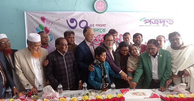 ‘আগামী দিনের আশা ভরসার কত না মধুর ছবি, ফুটিয়া উঠেছে আঁখির পাতায় ডুবেছে যখন রবি’-এমনই আশা-প্রত্যাশার আলো জ্বেলে এগিয়ে যাওয়ার প্রত্যয়ে পালিত হয়েছে দৈনিক পত্রদূতের ৩০তম জন্মদিন। মঙ্গলবার (২৩ জানুয়ারি) শীতের আলো ঝলমল সোনালী সকালে সাতক্ষীরা প্রেসক্লাবে দৈনিক পত্রদূতের প্রতিষ্ঠা বার্ষিকী উপলক্ষে বসেছিল সর্বস্তরের মানুষের মিলনমেলা। শিক্ষক-ছাত্র, আইনজীবী, রাজনীতিক, ব্যবসায়ী, উদ্যোক্তা, ক্রীড়াবিদ, লেখক, কবি, সাহিত্যিক, সাংবাদিক, কৃষক, শ্রমিকসহ বিভিন্ন পেশার মানুষের উপস্থিতিতে মুখর হয়ে উঠেছিল সাতক্ষীরা প্রেসক্লাব চত্ত্বর। হাতে ফুল আর চোখে স্বপ্ন নিয়ে এসেছিলেন তরুণ-তরুণী, যুব-বৃদ্ধ সবাই।
