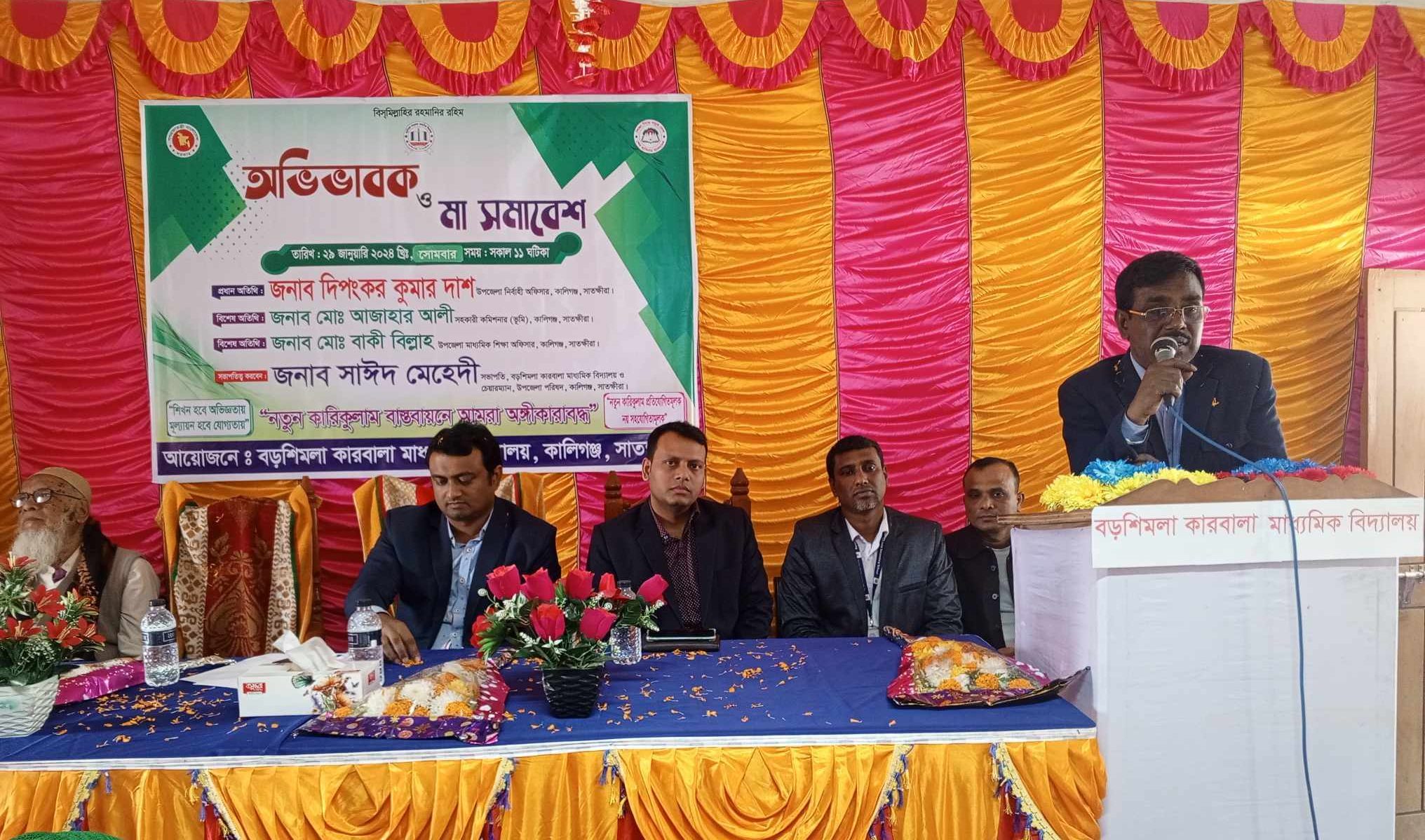 হাবিবুল্লাহ বাহার কালিগঞ্জ থেকে: ” শিখন হবে অভিজ্ঞতায়, মূল্যায়ন হবে যোগ্যতায়” এই প্রতিপাদ্যকে সামনে রেখে কালিগঞ্জ উপজেলার ঐতিহ্যবাহী বড়শিমলা কারবালা মাধ্যমিক বিদ্যালয়ে নতুন কারিকুলাম বাস্তবায়নের লক্ষ্যে অভিভাবক ও মা সমাবেশ অনুষ্ঠিত হয়েছে। সোমবার (২৯ জানুয়ারি) সকাল ১১ ঘটিকায় বিদ্যালয়ের জহুরুল হক অডিটোরিয়ামে এ সমাবেশ অনুষ্ঠিত হয়।বিদ্যালয়ের প্রধান শিক্ষক গাজী মিজানুর রহমানের সার্বিক ব্যবস্থাপনায় এবং বিদ্যালয়ের সভাপতি ও কালিগঞ্জ উপজেলা পরিষদের চেয়ারম্যান সাঈদ মেহেদীর সভাপতিত্বে প্রধান অতিথি হিসেবে উপস্থিত ছিলেন কালিগঞ্জ উপজেলা নির্বাহী কর্মকর্তা দীপঙ্কর দাশ। সহকারী শিক্ষক আব্দুল্লাহ আল মামুনের সঞ্চালনায় বিশেষ অতিথি হিসেবে বক্তব্য প্রদান করেন কালিগঞ্জ উপজেলা সহকারী কমিশনার (ভূমি) মো: আজাহার আলী, বিদ্যালয়ের দাতা সদস্য শেখ রফিকুল ইসলাম। এসময়ে আরো উপস্থিত ছিলেন কালিগঞ্জ রিপোর্টার ক্লাবের সভাপতি অধ্যাপক নিয়াজ কওছার তুহিন, সাংগঠনিক সম্পাদক শেখ শাওন আহমেদ সোহাগ, দৈনিক দৃষ্টিপাত কালিগঞ্জ উপজেলা ব্যুরো প্রধান শেখ শরিফুল ইসলাম, দৈনিক আজকের সাতক্ষীরার কালিগঞ্জ ব্যুরো প্রধান মো: শিমুল হোসেন, সহকারী প্রধান শিক্ষক লফনাজ পারভিন, সিনিয়র শিক্ষক রবীন চন্দ্র লস্কার , ব্রজেন কুমার মন্ডল, সুব্রত সরকার। সমাবেশে বক্তারা বলেন আপনার সন্তান কে সুশিক্ষার জন্য আপনাকে সচেতন হবে। নতুন কারিকুলাম বাস্তবায়নের জন্য অভিভাবক -শিক্ষক সমাবেশের মাধ্যমে তাদের দুর্বল দিক গুলো চিহ্নিত করতে হবে। এছাড়াও বিদ্যালয়ের অভিভাবকদের মধ্যে মো: ফারুক হোসেন, সবুজ হোসেন, শিমু বিদ্যালয়ের শিক্ষার মান ও শৃংখলা এবং প্রধান শিক্ষকের দক্ষ পরিচালনার প্রশংসামুলক বক্তব্য প্রদান করেন। এছাড়াও তিন শতাধিক অভিভাবক, গণমাধ্যম কর্মী ও এলাকার সুধীজন উপস্থিত ছিলেন।