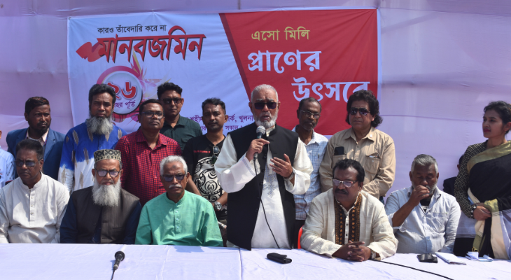 মহান ভাষা আন্দোলনের মাসের শেষ দিনে ঐতিহাসিক শহীদ হাদিস পার্ক খুলনার কেন্দ্রীয় শহীদ মিনারের পাদদেশে ব্যতিক্রমধর্মী অনুষ্ঠানের মধ্যদিয়ে উদযাপিত হয়েছে দক্ষিণ এশিয়ায় বাংলা ভাষায় প্রথম ট্যাবলেট পত্রিকা দৈনিক মানবজমিনের ২৬তম প্রতিষ্ঠা বার্ষিকী। আজ বৃহস্পতিবার বেলা ১১ টায় অনুষ্ঠানে কেক কেটে অনুষ্ঠানের উদ্বোধন করেন খুলনা সিটি করপোরেশনের মেয়র ও মহানগর আওয়ামীলীগের সভাপতি তালুকদার আব্দুল খালেক। অসুষ্ঠানে আওয়ামীগ, বিএনপি, জাতীয় পার্টি, জামায়াতসহ রাজনৈতিক দলের শীর্ষ নেতৃবৃন্দ, জনপ্রতিনিধি, পেশাজীবী, সাংস্কৃতিক ব্যক্তিবর্গ ও গণমাধ্যমকর্মীদের মিলন মেলায় পরিণত হয়। এসময়ে মহানগর ও জেলা বিএনপিসহ বিভিন্ন রাজনৈতিক, সামাজিক ও পেশাজীবি সংগঠনের পক্ষ থেকে পৃথক পৃথকভাবে প্রতিষ্ঠা বার্ষিকীর ফুলেল শুভেচ্ছা জানানো হয়। খুলনার আন্দোলন সংগ্রামের প্রাণ কেন্দ্র কেন্দ্রীয় শহীদ মিনার চত্তরে মানবজমিনের এ বর্ণাঢ্য আয়োজন সকলের দৃষ্টি কেড়েছে।