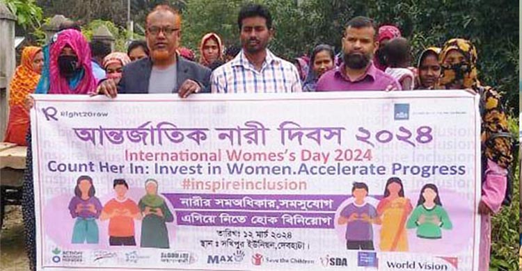 দেবহাটা প্রতিনিধি: “নারীর সমঅধিকার, সমসুযোগে এগিয়ে নিতে হোক বিনিয়োগ”এই বার্তা নিয়ে দেবহাটায় আন্তর্জাতিক নারী দিবস উদযাপন করা হয়েছে। মঙ্গলবার (১২ মার্চ) বেসরকারি সংস্থা ওয়ার্ল্ড ভিশন বাংলাদেশের রাইট টু গ্রো প্রজেক্টের সহযোগীতায় সিএসও এবং এলইএ লিডারশীপের আয়োজনে র‌্যালী ও আলোচনা সভা অনুষ্ঠিত হয়। উপজেলা সখিপুর ইউনিয়নে কামটা বটতলাস্থ ডায়বেটিক হাসপাতাল চত্বর থেকে একটি র‌্যালী বের হয়ে বিভিন্ন স্থান প্রদক্ষিণ শেষে আলোচনা সভায় মিলিত হয়। এতে প্রধান অতিথির বক্তব্য দেন ঈদগাহ কমিউনিটি ক্লিনিকের সিএইচসিপি জসিমউদ্দীন। বিশেষ অতিথির বক্তব্য দেন ক্ষুদ্র উদ্দ্যোক্তা জামসেদ আলম। আশার আলো সংস্থার হুমায়ুন কবিরের সভাপতিত্বে সখিপুর উদায়ন সংঘের সাধারণ সম্পাদক মিজানুর রহমান। অন্যান্যদের মধ্যে উপস্থিত ছিলেন ওয়ার্ল্ড ভিশন বাংলাদেশের রাইট টু গ্রো প্রজেক্টের অ্যাডভোকেসী ও জেন্ডার অফিসার উজ্জ্বল কুমার পাল, প্রজেক্টের ম্যানেজার জগন্ময় প্রজেশ বিশ্বাস।