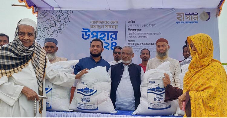 দেবহাটা প্রতিনিধি: দেবহাটার পারুলিয়ার সেকেন্দ্রায় অবস্থিত ব্লিস ইন্টারন্যাশনাল আ্যকাডেমীতে পবিত্র রমজান উপলক্ষে ১৫শ পরিবারের মাঝে ইফতার ও খাদ্য সামগ্রী উপহার দেওয়া হয়েছে। মঙ্গলবার (১২ মার্চ) দেবহাটা উপজেলা শাখা ক্যাম্পাসে হাসান ফুড এন্ড বেভারেজ লিমিটেডের সৌজন্যে এ উপহার সামগ্রী বিতরণী করা হয়। অনুষ্ঠানে প্রতিষ্ঠানের প্রতিষ্ঠাতা চেয়ারম্যান ও বিশিষ্ট ব্যবসায়ী আবু হাসানের সভাপতিত্বে প্রধান অতিথি ছিলেন উপজেলা চেয়ারম্যান ও উপজেলা আওয়ামী লীগের সভাপতি মুজিবর রহমান। বিশেষ অতিথি ছিলেন উপজেলা ভাইস চেয়ারম্যান হাবিবুর রহমান সবুজ, হাসান গ্রুপের চেয়ারম্যান মোঃ রফিকুল ইসলাম, বিশিষ্ট ব্যবসায়ী ও ব্লিস ইন্টারন্যাশনাল একাডেমীর পরিচালক কবির হুসাইন। অনুষ্ঠান পরিচালনা করেন হাসান ফুড এন্ড বেভারেজ লিমিটেড এর ম্যানেজার মোঃ জয়নাল আবেদীন। উপস্থিত ছিলেন হাসান ইম্পেক্স লিমিটেডের একাউন্ট ইনচার্জ কুতুব উদ্দীন, ম্যানেজার মিজানুর রহমান, হাসান এজেন্সি প্রাইভেট লিমিটেডের ইনচার্জ আজহার মাহমুদ ও ১৫শ গরিব, অসহায় পরিবারের সদস্যরা।