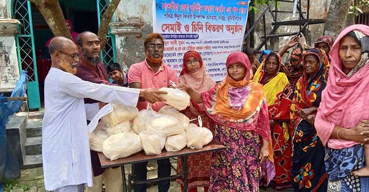 সাতক্ষীরা জেলা ভূমিহীন কল্যান সংগঠনের পক্ষ থেকে অসহায় দুস্থ ভূমিহীনদের মাঝে সেমাই, চিনি বিতরণ করা হয়েছে। মঙ্গলবার সকাল ১১টায় সাতক্ষীরা সদর উপজেলার ঝাউডাঙ্গা, আগরদাড়ী, কুশখালী, শিবপুর ইনিয়নের বিভিন্ন গ্রাম এবং কলারোয়া ও আশাশুনি উপজেলার কয়েকটি গ্রামে ঈদুল ফিতর উপলক্ষে ৪০০ পরিবারের মাঝে ঊদ উহার হিসেবে এসব সামগ্রী বিতরণ করা হয়। এসময় উপস্থিত ছিলেন সাতক্ষীরা জেলা ভূমিহীন কল্যান সংগঠনের সভাপতি মো. আব্দুল মান্নান, সাধারণ সম্পাদক মো. কামরুজ্জামান, সহ-সভাপতি মো. সিরাজুল ইসলাম, মহিলা বিষয়ক সম্পাদিকা ইসরাত জাহান, গোলাম মোস্তফা, আক্তারুজ্জামান বাবু, রবিউল ইসলাম, মঈনুল ইসলাম, মো. আসাদুল ইসলাম, আমানুল্লাহ্ প্রমুখ।