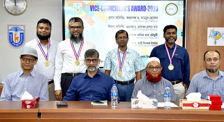গবেষণায় বিশেষ অবদানের স্বীকৃতিস্বরূপ খুলনা বিশ্ববিদ্যালয়ের ৪ স্কুলের ৪ জন শিক্ষককে ভাইস-চ্যান্সেলর অ্যাওয়ার্ড-২০২৩ প্রদান করা হয়েছে। আজ ১২ মে (রবিবার) বিশ্ববিদ্যালয়ের আচার্য প্রফুল্ল চন্দ্র রায় কেন্দ্রীয় গবেষণাগারের কনফারেন্স রুমে আয়োজিত অনুষ্ঠানে প্রধান অতিথি হিসেবে অ্যাওয়ার্ডপ্রাপ্ত প্রত্যেক শিক্ষককে তিনি ৫০ হাজার টাকার চেক, সনদপত্র ও মেডেল তুলে দেন উপাচার্য প্রফেসর ড. মাহমুদ হোসেন।