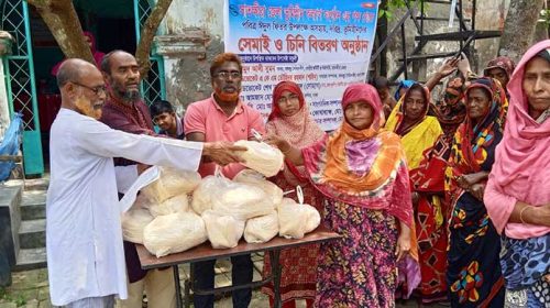 সাতক্ষীরা জেলা ভূমিহীন কল্যান সংগঠনের পক্ষ থেকে অসহায় দুস্থ ভূমিহীনদের মাঝে সেমাই, চিনি বিতরণ করা হয়েছে। মঙ্গলবার সকাল ১১টায় সাতক্ষীরা…